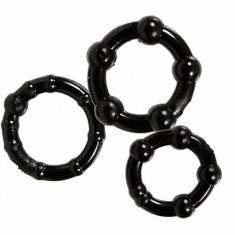 Anelli fallici di varie misure, STAY HARD - THREE RINGS - BLACK, permettono un erezione potente e duratura.